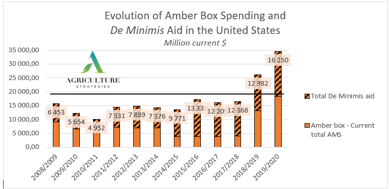 Figure 1: Evolution of Spending Classified in the Amber Box and De Minimis Aid in the United States, in Current Euros, Source: Agriculture Stratégies based on WTO Notifications