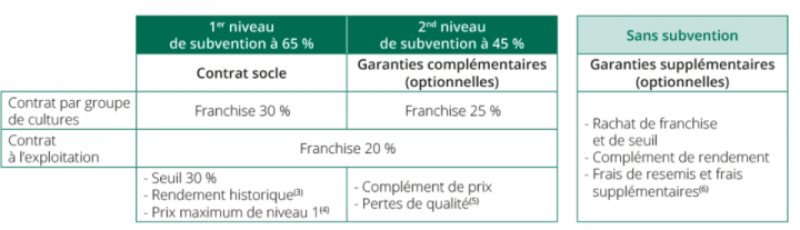 Figure 1: les choix de contrats possibles pour les assurances multirisques climatiques, copyright Groupama