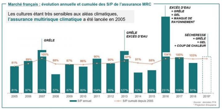 Alors que ces contrats couvrent la grêle, la tempête, le gel, l’inondation et la sécheresse, le taux de couverture plafonne à 30% de la SAU hors prairie en 2018, ce qui ne suffit pas à assurer un financement à l’équilibre du dispositif. En effet, le fonctionnement de l’assurance nécessite une mutualisation du risque, et quand l’aléa touche un grand nombre d’assurés au même moment, comme c’est le cas quand il s’agit d’une sécheresse généralisée, cela coûte très cher aux assureurs.