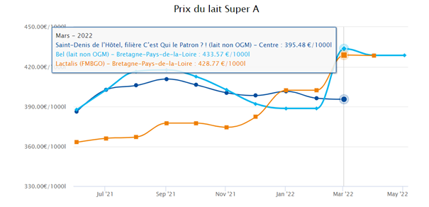 Figure 2 : Comparaison du prix du lait pour différents collecteurs, source l’Eleveur Laitier, consulté le 3/05/22