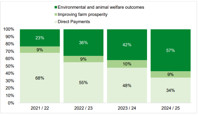 Figure 1: évolution de la répartition des aides dans le budget anglais (source: Agricultural Transition Plan 2021-2024)