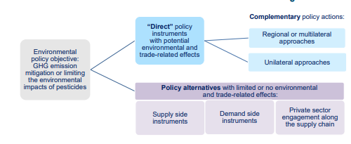 - Les premiers sont ceux qui agissent directement sur leur cible, en cherchant à réduire les émissions de GES ou l’usage et/ou le niveau de toxicité des pesticides. Il s’agit par exemple de la création d’un marché du carbone pour les émissions de GES ou l’interdiction de molécules pour les pesticides.