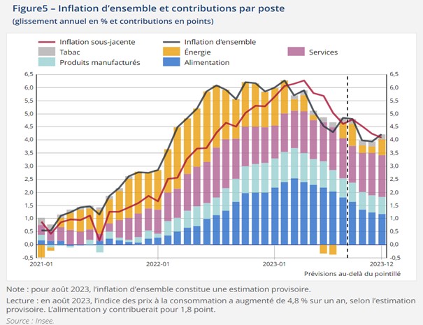 Figure 6 : Inflation globale et contributions par poste, source INSEE