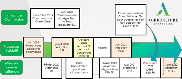 Figure 1 : Les étapes de négociation de la PAC 2023-2027, source Agriculture Stratégies