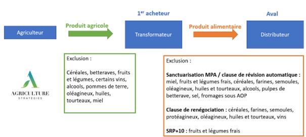 Figure 2 : Schéma simplifié des exclusions de certains produits des lois Egalim, source Agriculture Stratégies
