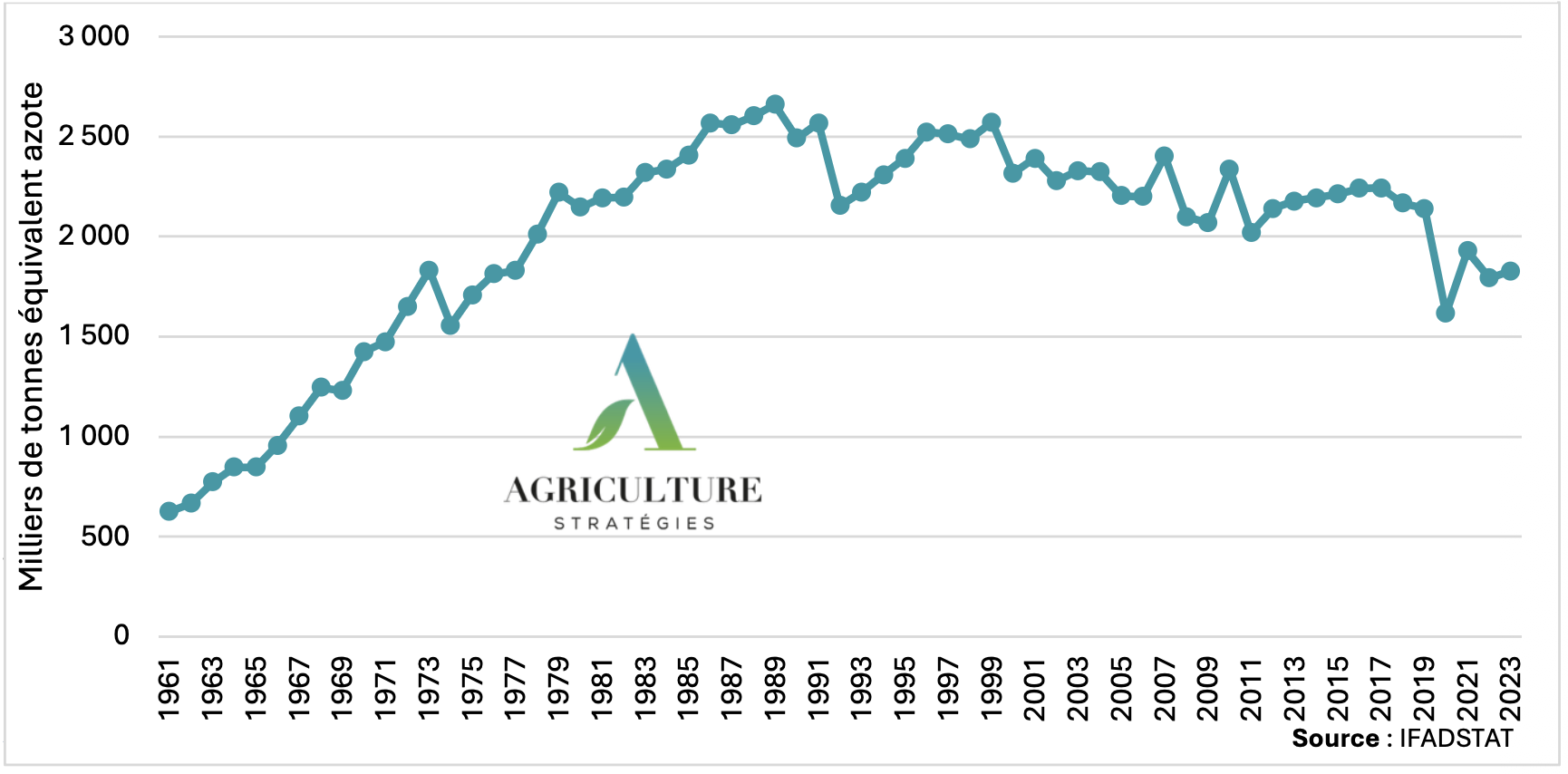 Figure 5 : Livraisons d’engrais azotés, en France (1961-2023)